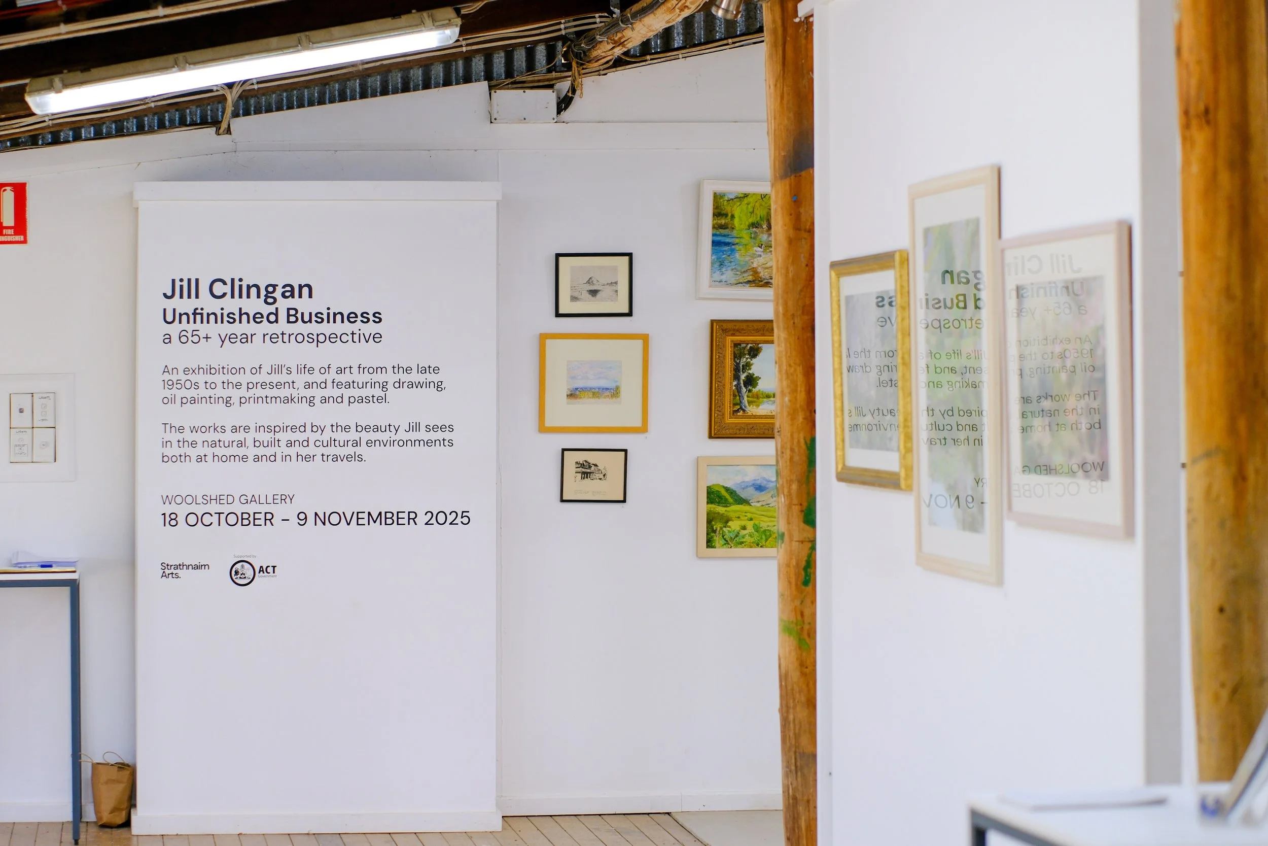 Jill Clingan, Unfinished Business on display in the Woolshed Gallery