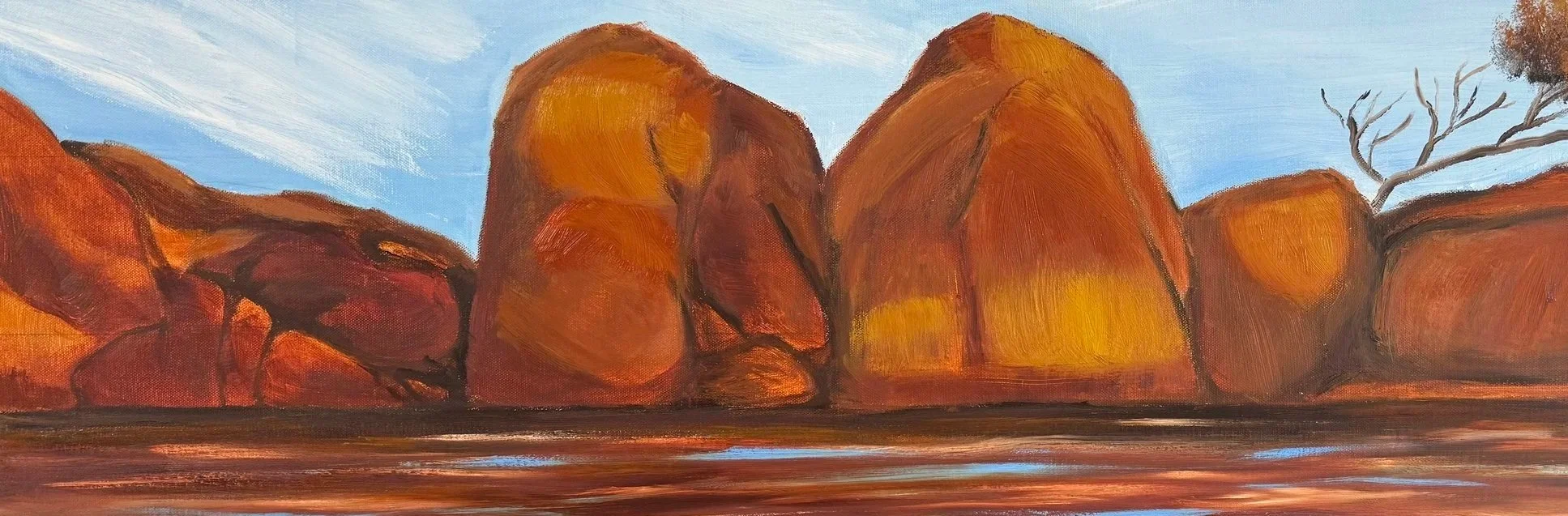 In counterpoint, the second component of the exhibition marks a new direction in Kindon’s practice, exploring peace, beauty, and expansive possibility through panoramic wide-format canvases. Working with elongated “broadsheet” proportions and large-scale triptych arrangements, Kindon embraces the visual drama of the extended horizon, drawing comparisons to cinematic formats such as VistaVision and IMAX. Together, these two bodies of work embody what the artist describes as the irreconcilable yin and yang of the human condition — aching beauty set against unbearable agony — asking viewers to hold both simultaneously, with eyes wide open.