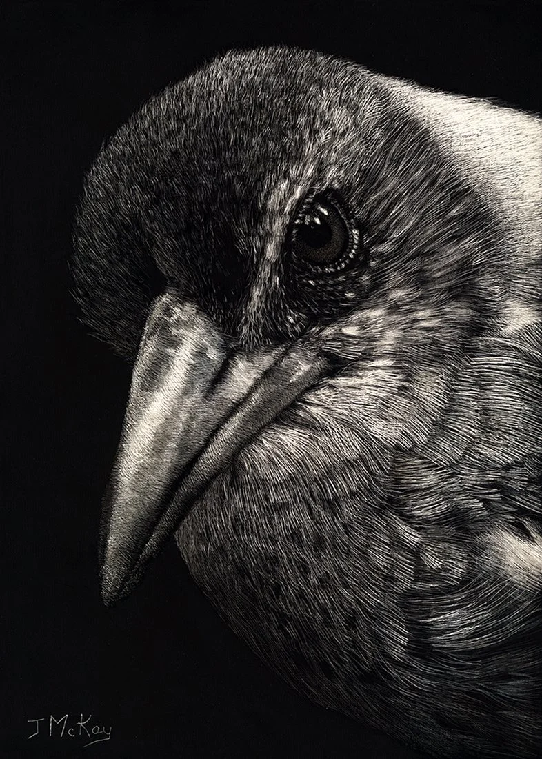 I studied a semester of drawing in a U.S. university and a semester of Art History at ANU. For many years I have attended weekly watercolour classes, mostly at ANU. In 2017 I came across scratchboard and found it to be the medium I could use to depict the wildlife I knew so well as an animal carer. I am now a Signature member of the International Society of Scratchboard Artists. ISSA has conference workshop videos and great discussions about scratchboard.